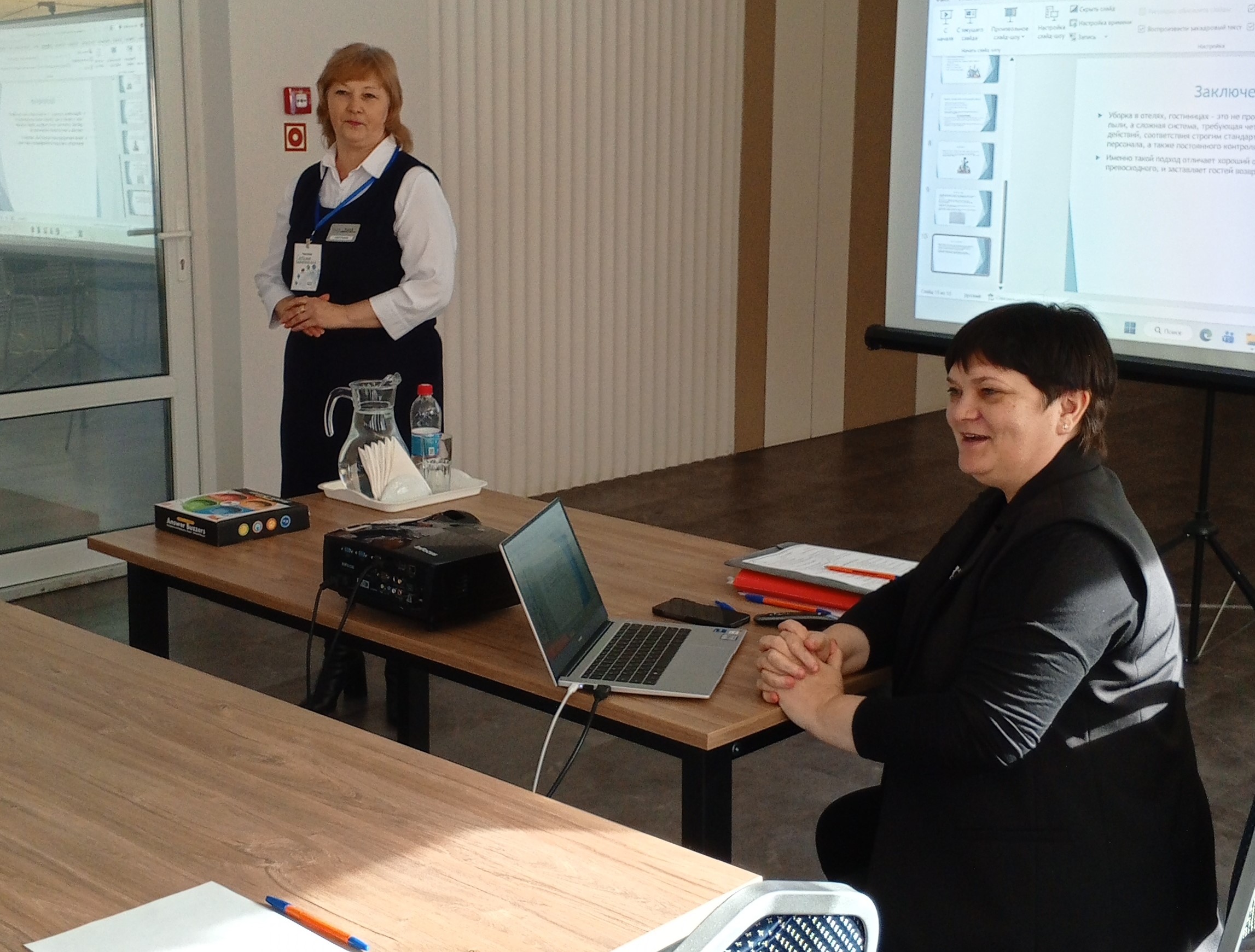 Хаузкипер отеля «Высоцкий» Дина Новгородцева поделилась тонкостями организации работы прачечной. Выступления были интересными, с фото- и видеопрезентациями. Все присутствующие оживлённо задавали вопросы и делились мнениями.