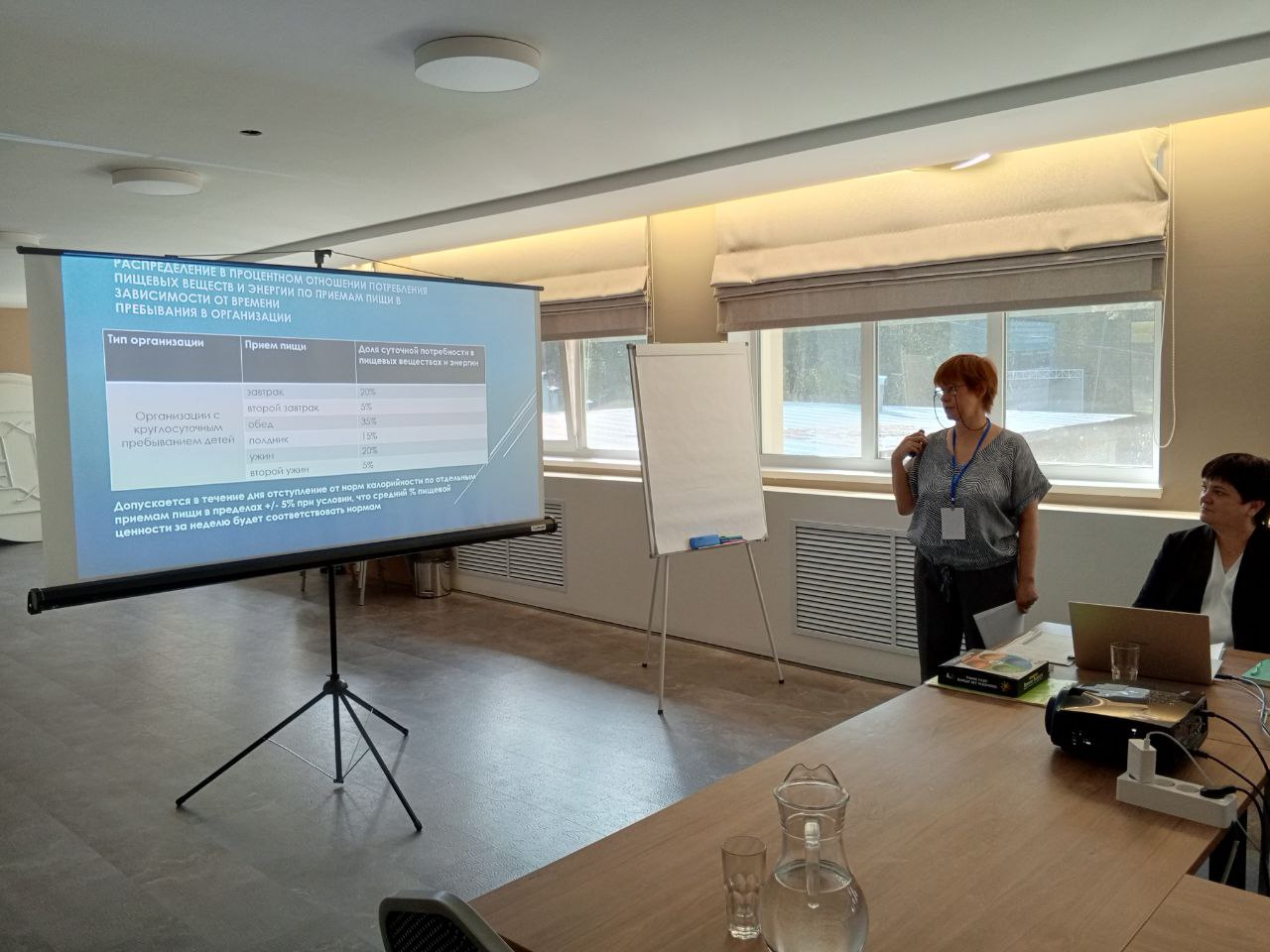 После приветственного слова Игоря Анатольевича Ольга Викторовна провела интерактив «Знакомство участников», затем Елена Сергеевна рассказала о сборе, анализе и динамике отзывов гостей. О «Детокс-программе» рассказали О.Г. Степанская и управляющая службой организации питания Г.В. Савченко. А далее – калейдоскоп выступлений участников на различные темы: обслуживание по системе «шведский стол», диетическое питание в санатории, особенности и отличия формирования меню, и другие темы. В течение дня участники встречи получали новые сведения, делились опытом, задавали друг другу вопросы.