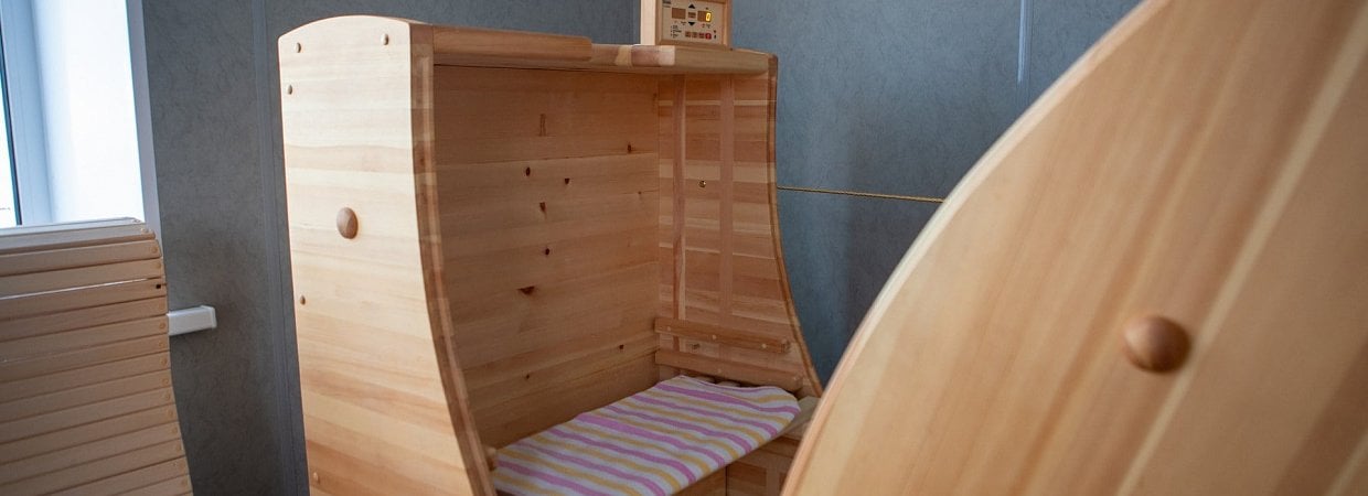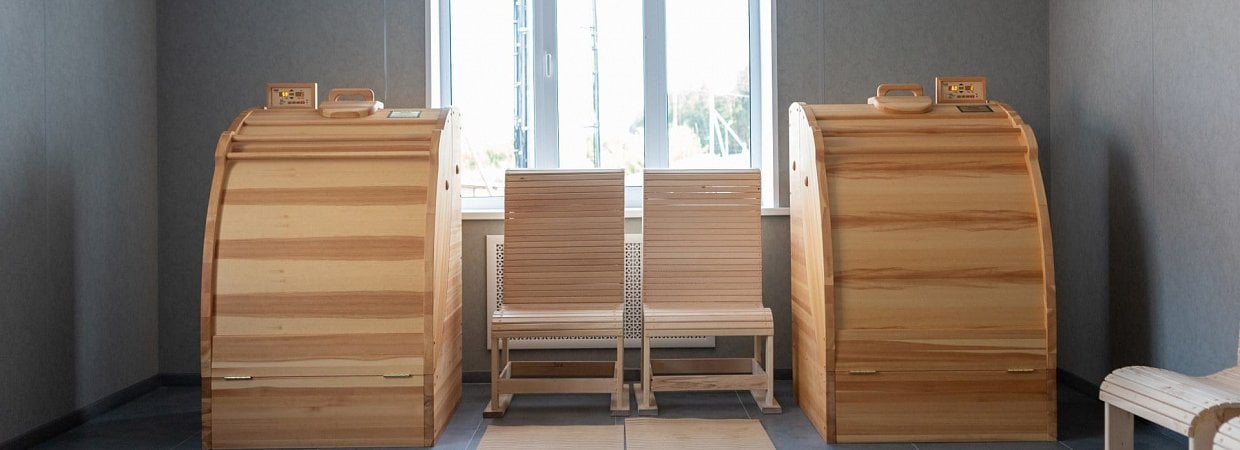 Кедровая бочка представляет собой деревянную емкость в форме бочки, изготовленную из натурального дерева – сибирского или алтайского кедра. Ее польза для здоровья человека заключается в воздействии горячего пара, насыщенного травяными концентратами, на организм через кожные покровы. В санатории применяется с аромамаслами: кедр, мята можжевельник, грейпфрут, сладкий апельсин.