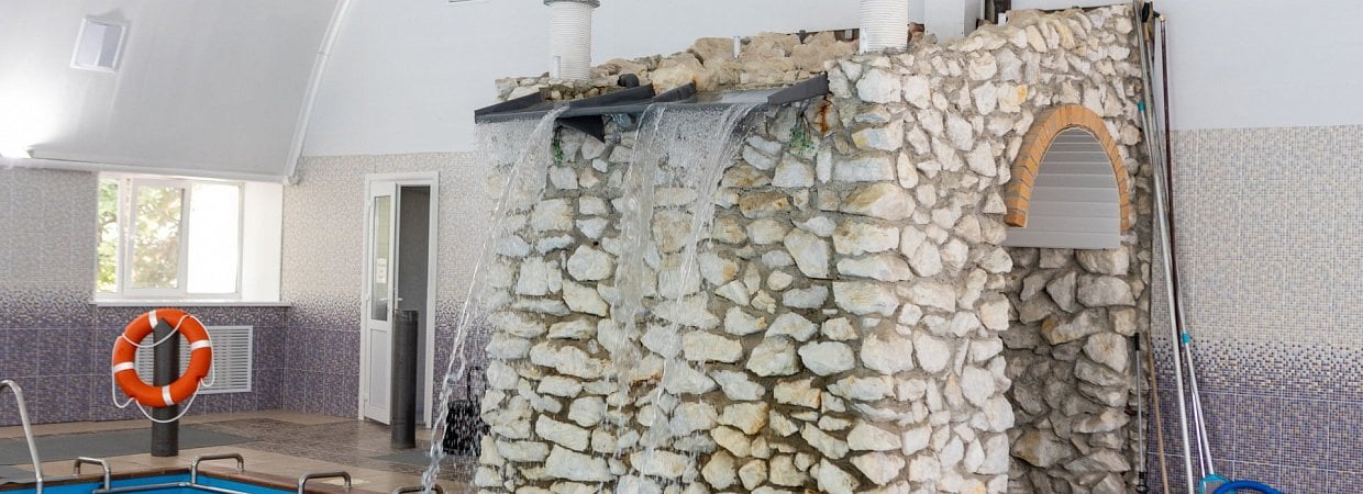 - Глубина бассейна min-1.40, max-2.40. Имеются каскадный душ, гидромассажеры.